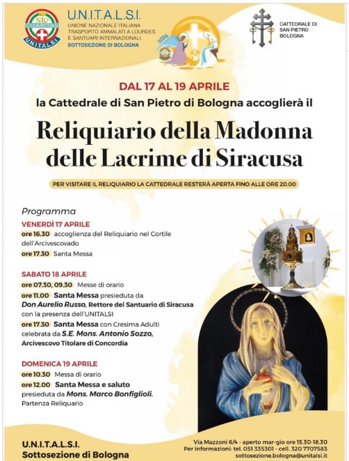 Dal 17 al 19 aprile la Cattedrale di S. Pietro ospita il Reliquiario della Madonna delle Lacrime di Siracusa. U.N.I.T.A.L.S.I. |