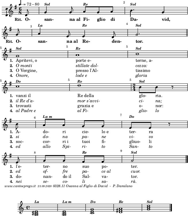 Lode a Te o Cristo! (Lode a Te o Cristo!) Re di eterna gloria! (ripete). Video (d. I. Sgarlata) Spartito (versetti quaresima 2026 anno A) Video karaoke versione S. Gioacchino 2006 Spartito |