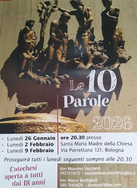 Il venerdì alle ore 21, anche quest'anno nella sala di S. Croce. Si può parcheggiare in cortile. Incontro della comunità "ALLA SCUOLA DELLA PAROLA" di approfondimento della Sacra Scrittura La lettura e il confronto proseguono sulle pagine della BIBBIA - Libro dei Proverbi PARTECIPATE! Prossimo appuntamento il 23 gennaio. |
