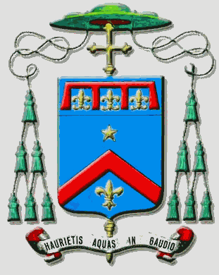 Il motto è un versetto di Isaia: "attingerete acqua con gioia alle sorgenti della salvezza" (12,3). Il campo azzurro è segno dell'acqua, dalla quale viene la vita. Nella Bibbia vi sono le acque sopra il cielo (la stella, segno della presenza di Dio), e le acque al di sopra del cielo, nelle quali germoglia il giglio delle valli (Ct 2,1). Il giusto è come albero piantato lungo corsi d'acqua (Sal 1). Come la pioggia scende dal cielo e non vi ritorna senza aver fatto germogliare la terra, così è del Verbo di Dio che compie la sua missione con efficacia (cfr. Is 55,10 s), perché Dio vuole che tutti gli uomini siano salvati (1 Tm 2,4). |